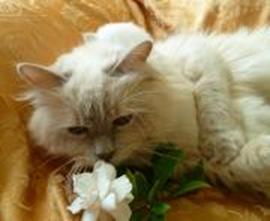 CREAM POINT:  The body should be creamy white with the points ranging from pale sand to deep cream.  The overall impression is dull, cool buff beige.  The paw pads and nose leather are pink.